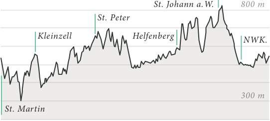 Der Weg führt von St. Martin über Kleinzell, Neufelden, St. Ulrich, St. Peter, Auberg, Haslach, Helfenberg und Ahorn, St. Johann und Niederwaldkirchen wieder zurück nach St. Martin. „Es ist eine Reise durchs Mühlviertel und zu sich selbst. Beim Pilgern kann man belastende Dinge einfach am Wegesrand liegen lassen“, sagen die Initiatoren rund um Naturstein-Unternehmer Johannes Artmayr.