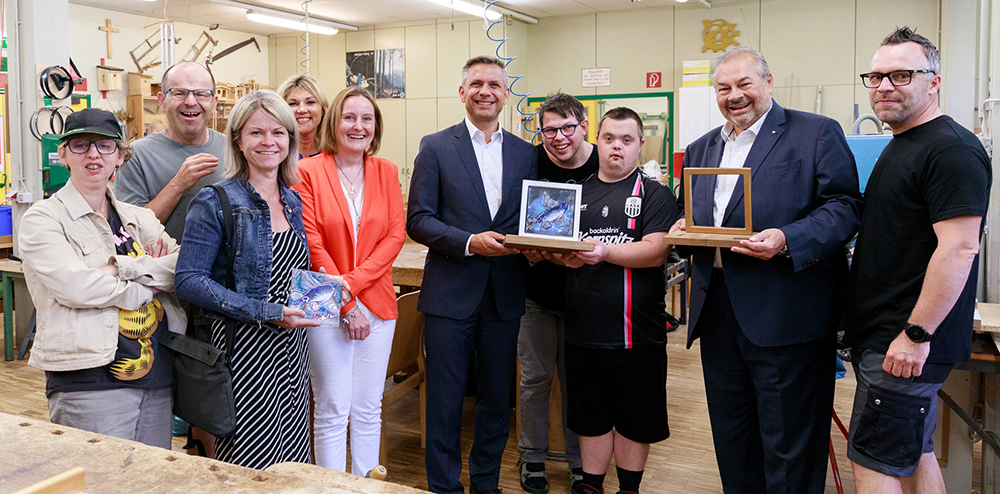 „Der fliegende Fisch ist der erste Inklusionspreis des Landes. Wir machen damit deutlich, dass Menschen mit Beeinträchtigungen ihren Platz in der Mitte unserer Gesellschaft haben. Die offizielle Trophäe für den Fliegenden Fisch spiegelt den Inklusionsgedanken wieder und wurde von drei Werkstätten des Diakoniewerks gefertigt“, so Sozial-Landesrat Wolfgang Hattmannsdorfer beim Besuch der Fertigung in der Werkstätte Linzerberg.