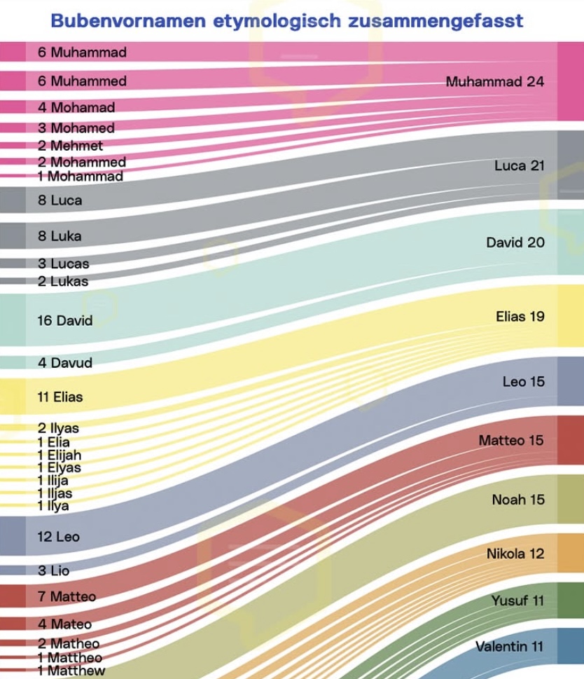 Auch in der Vornamenliste aller in Linz gemeldeter männlicher Personen ist der muslimisch-arabische Name im Vormarsch und liegt mit 1.608 Nennungen bereits auf Platz 5.