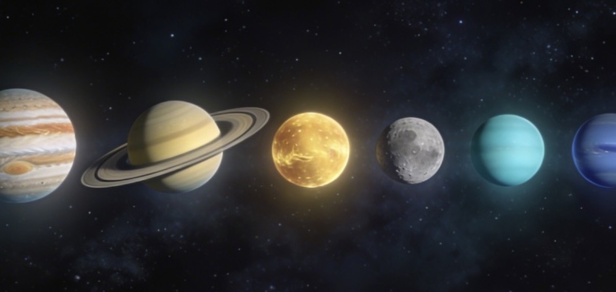 Das Phänomen, das auch „Planetenprozession“ genannt wird, ist eine reine Perspektivensache – die Planeten bewegen sich keineswegs in einer Reihe, sondern liegen nur von der Erde aus optisch gesehen hintereinander.