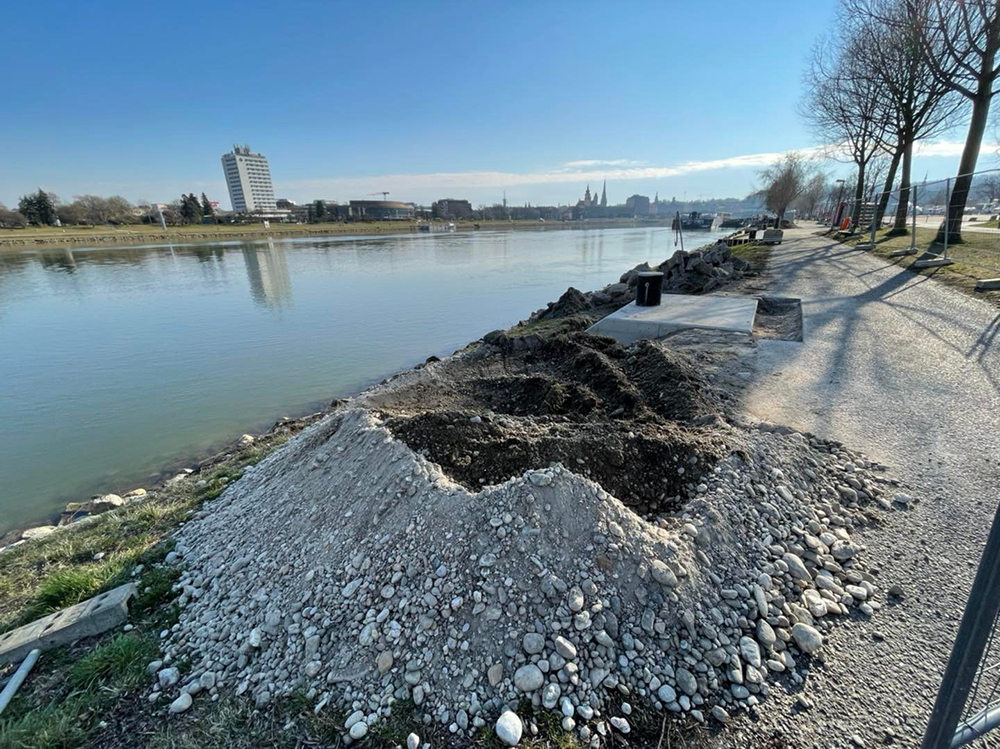 Auf 150 Metern Uferlänge entsteht am östlichen Ende des Jahrmarktgeländes eine Anlegestelle für Kreuzfahrtschiffe. Die Bewohner der Ferihumerstraße wurden aber einmal mehr nicht informiert, was da direkt vor ihrer Haustüre an der Donau passiert. Noch dazu wird diese aktuell auf einer der engsten Stelle des gesamten Uferbereichs gebaut: Nur sieben Meter Breite stehen zwischen dem Sportplatz des SV Urfahr und dem Donauufer zur Verfügung. Neben dem Treppel(Geh-)weg befindet sich hier auch der vielbefahrene Donauradweg – und in Kürze eben auch die Schiffsanlegestelle. Künftig werden hier hunderte Passagiere ein- und aussteigen sowie Liefer-LKWs zufahren, um die Schiffe zu versorgen.