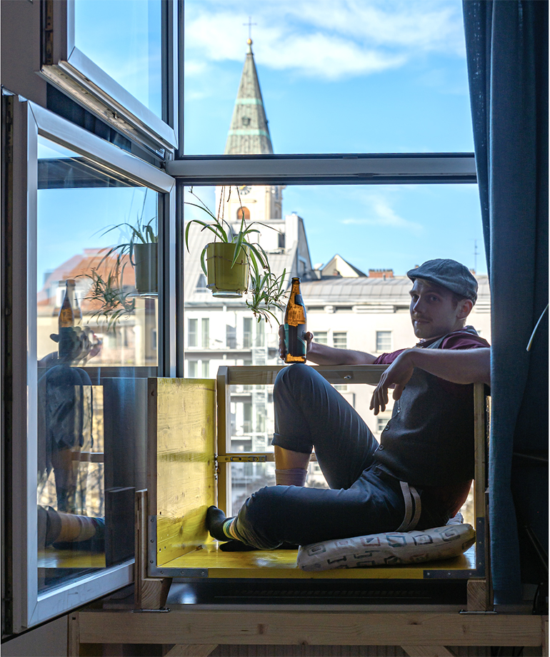 Der junge Salzburger ist letzten Frühling im Lockdown auf die Idee gekommen, als er selbst in seiner balkonlosen Wohnung in Linz am Fensterbrett saß. Seitdem sind viele Arbeitsstunden in die Entwicklung der Balkonalternative geflossen. „Vor allem die statische und rechtliche Absicherung war eine Herausforderung“, so der HTL-Absolvent. Dabei mussten viele Graubereiche des Baurechts durchgearbeitet werden, um zu einer sicheren und baurechtskonformen Lösung zu kommen.