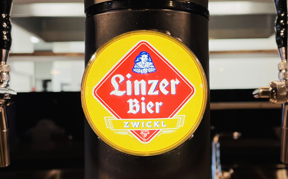 Auf der Bierkarte stehen gleich fünf Linzer Biere: das unfiltrierte Linzer Zwickl; das hopfenbetonte Linzer Pale Ale; das Linzer Edelstahl – ein Willkommens-Geschenk an unsere Stahlstadt; das Linzer Weizenbier; und natürlich das Original „Linzer Bier“.