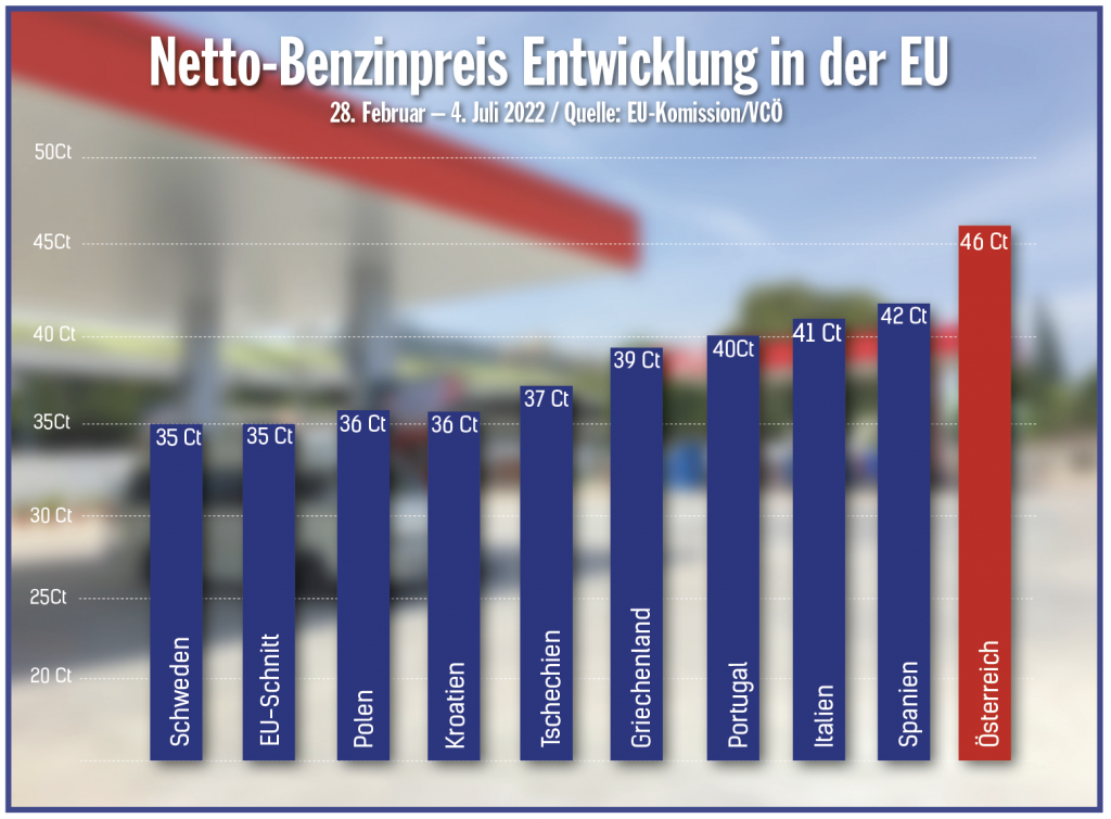 Jetzt ist es quasi amtlich: Eine aktuelle Analyse des Verkehrs Club Österreich zeigt, dass in Österreich der Netto-Benzinpreis (ohne Steuern und Abgaben) seit Beginn des Ukraine-Konflikts im EU-Vergleich am stärksten gestiegen ist. Auch der Netto-Dieselpreis ist stärker als im EU-Schnitt gestiegen.