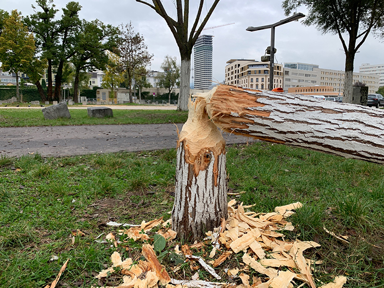 Biber-Spuren in zentraler Lage am Jahrmarkgelände.