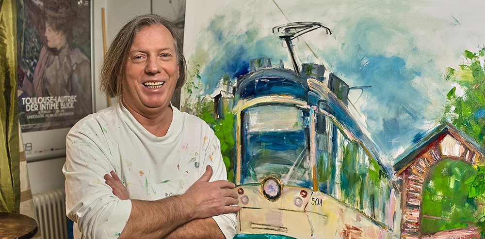 Seit 1898 fährt die Pöstlingbergbahn der LINZ AG auf den gleichnamigen Hausberg der Landeshauptstadt. Jetzt hat sich der bekannte Linzer Maler Gazmend Freitag der historischen Bahn mit dem Pinsel genähert.