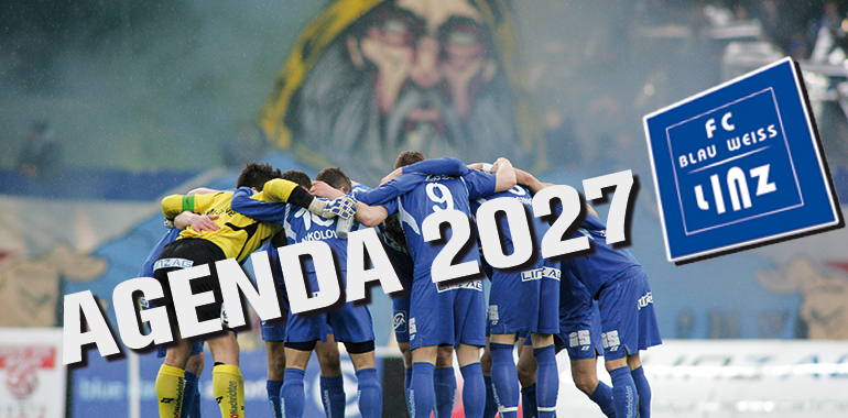 Alles neu lautet das Motto beim Erste Liga-Letzten FC Blau-Weiß Linz ab Juni 2017: Zu diesem Zeitpunkt endet die 20 Jahre dauernde Ära des Langzeit-Präsidenten Hermann Schellmann, ein neues Team unter seinem bisherigen Co. Walter Niedermayr übernimmt den Schuppen. Heute wurde ein ambitioniertes neues Konzept, die „Agenda2027“ , präsentiert. Ziel: der Bundesliga-Aufstieg bis zum Jahr 2027. Gespielt werden soll auch dann noch im Linzer Stadion, eigene Heimstätte ist keine geplant. Die Geschäftsstelle samt Fanshop soll bis Sommer 2017 in die Tabakfabrik Linz übersiedeln.