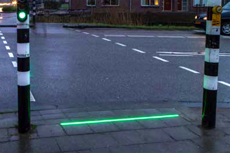 Die holländische Gemeinde Bodegraven-Reeuwijk hat solche Bodenampeln bereits seit 2017 in Verwendung. Die rund 1,5 Meter langen LED-Lichtstreifen leuchten in rotem oder grünem Licht. Auch in der deutschen Stadt Augsburg gibt es solche „Bompeln“ bereits, das System hat sich dort ganz gut bewährt. Anders die Situation in Köln: Nach einer Testphase mit drei Ampeln entschied man, keine weiteren Bodenampeln mehr zu installieren, da dort keine spürbare Verbesserung eingetreten war. In Tel Aviv und Singapur hingegen hat sich die Idee bewährt.