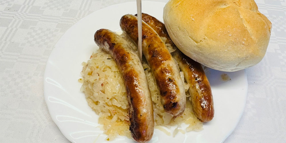 Früher wurden die Bratwürstel übrigens gerne auch als „Bratwürstelsuppe“ gegessen, heute hat sich die klassische Variante mit Sauerkraut eindeutig durchgesetzt, wiewohl auch Blaukraut, Erdäpfelschmarrn oder Röstkartoffel konzediert werden.