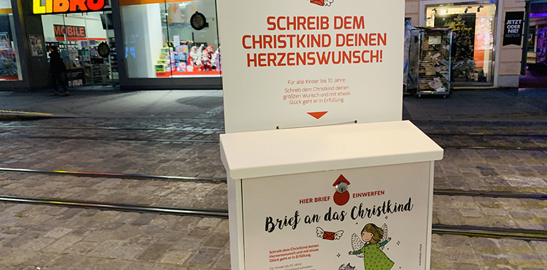 Du bist noch nicht älter als 10 Jahre? Dann schreib deinen Wunschbrief ans Christkind und gib diesen bis spätestens 13. Dezember 2019 in eine der Christkindl-Boxen in ausgewählten Geschäften oder in einen der vier gekennzeichneten Briefkästen entlang der Landstraße. Deine Eltern helfen dir ganz sicher dabei! Wichtig: Namen, Telefon und Adresse nicht vergessen.