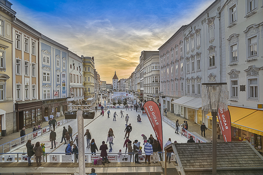 Wer in Linz eislaufen will, muss auf die eher nüchternen und wenig stimmungsvollen Eisflächen im Parkbad, beim Bad in Schörgenhub oder in Ebelsberg zurückgreifen. Innerstädtisch gibt es auch heuer kein Eislaufvergnügen – anders als in Wels: Dort gibt es seit 2015 mitten am historischen Stadtplatz einen 800m2 großen Eisbereich in Form eines Achters, der von 9. Jänner bis zum 21. Februar 2023 kostenlos (Mo-Fr) zum Rundendrehen einlädt. Wels hat das richtig schlau gemacht: Möglich wird das Eislauferlebnis durch potente Sponsoren aus der Wirtschaft. In Linz gibt es mit dem Cityring, der City Marketing GmbH und dem Tourismusverband drei große und auch finanziell potente Player, was allen dreien offensichtlich fehlt, sind die nötigen Ideen und auch das Umsetzungsvermögen.
