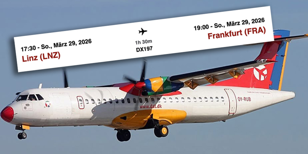 Am morgigen Sonntag (17:30 Uhr) hebt vom Flughafen Linz der erste Turboprop-Flieger nach Frankfurt ab. Laut Medienberichten rechnet die dänische Fluglinie DAT zum Start mit einer Auslastung von 30 Prozent – oder 21 Passagieren. Die Linie war im Herbst 2025 von Austrian bekanntlich eingestellt worden, weil diese schwer defizitär war.