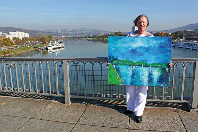 Bereits 1990 flüchtete Gazmend Freitag aufgrund politischer Unruhen aus seiner Heimat Kosovo. Über Umwege gelangte Freitag nach Linz, wo sich der ehemalige Verwaltungsfachwirt seiner Kindheitsleidenschaft, der Kunst, widmete. Freitag versteht es neben der Akt- und Portraitmaler auch, Landschaftsthemen oder Motive aus der Mythologie umzusetzen. Die Nibelungen- und die Eisenbahnbrücke sind Teil seines aktuellen „Brücken-Zyklus“.