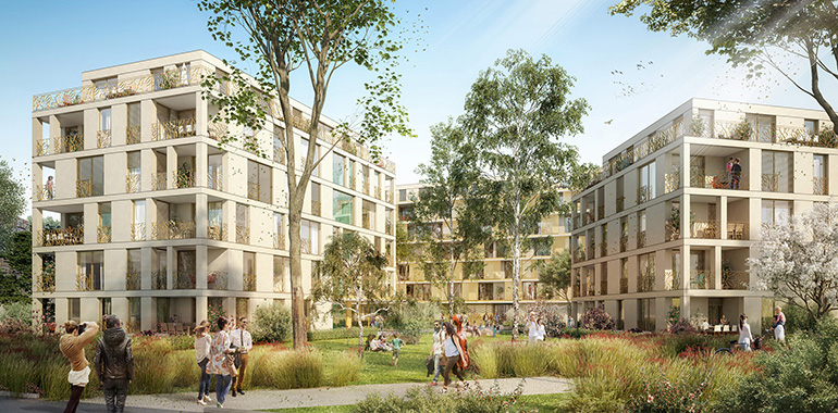 Der Siegerentwurf sieht ein- bis vier-Zimmer Wohnungen mit 35 bis 86 Quadratmetern Nutzfläche vor. Alle Wohnungen verfügen entweder über einen kleinen Garten im Erdgeschoß, einen Balkon beziehungsweise Loggia oder Dachterrasse. Großzügige Fensterflächen sorgen für lichtdurchflutete Räume und bieten herrliche Ausblicke in die Natur.