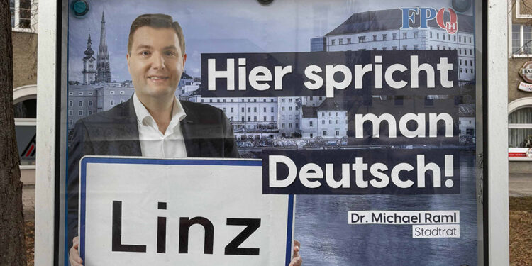 „Man spricht Deutsh“ – mit diesem holprigen Filmtitel witzelte der famose Humorist Gerhard Polt Ende der 1980er-Jahre über die ungenügenden Deutschkenntnisse von Italienern an den deutschen Hausmeisterstränden. Einen ernsteren Hintergrund hat das neue Plakat von FPÖ-Sicherheitsstadtrat Michael Raml: Mit dem Slogan „Hier spricht man Deutsch“ will er ein klares Zeichen für verbindliche Regeln im Zusammenleben setzen. „Deutschkenntnisse sind keine Nebensächlichkeit, sondern die Grundvoraussetzung für Integration, Bildungserfolg und gesellschaftlichen Zusammenhalt. Wer dauerhaft in Linz leben will, muss unsere Sprache lernen.“
