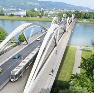 Am 17. September 2014 hat eine 14-köpfige Jury darüber entschieden, wie die Lösung für eine neue Donaubrücke in Linz aussehen soll. Die Jury hat sich großer Mehrheit für das Projekt der Teilnehmergemeinschaft Marc Mimram Ingénierie SA und Marc Mimram Architecte aus Paris ausgesprochen. „Die Bildhaftigkeit der neuen Brücke hat das Potential eines neuen Stadtsignets“, so die Jury. Beim Siegerprojekt handelt es sich um eine moderne Stahlstruktur, welche die Bedeutung der Stahlindustrie für die Stadt Linz widerspiegelt. Das Projekt besticht durch seine Leichtigkeit sowie die reizvolle spannungsreiche neue Auffassung einer Zügelgurtkonstruktion. Am 28. August 2021 erfolgte die offizielle Eröffnung.