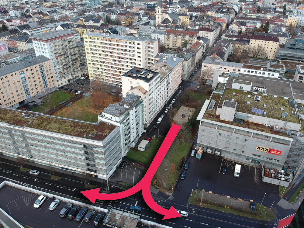 Den Anwohnern stößt die erwähnte Umlegung sauer auf, denn zwei öffentliche Straßen müssen verlegt werden – eine davon, die Starhembergstraße, wird von der dichtbewohnten Sackgasse zur Durchzugsstraße. „Die Straßenumlegung ist in enger Abstimmung und Kooperation mit der Stadt Linz zu Beginn des Planungsprozesses aus vielerlei Überlegungen entstanden und war integrierter Bestandteil des Architekturwettbewerbs“, sagt RLB-Pressesprecher Michael Huber. Er spricht von „umfangreichen Vorteilen“, die in Zusammenhang mit Infrastruktur und Freiraumgestaltung im Stadtgebiet geschaffen werden können. Vorteile für die Anrainer würden sich auch eine Fußgängerzone in der Goethestraße ergeben.