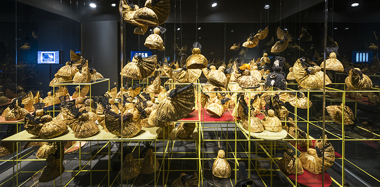 Mit Hilfe der OÖ Goldhaubengemeinschaft und privater Leihgeber konnten 150 Goldhauben zusammengetragen werden. Als eigentliche Schatzkammer innerhalb der Wunderkammer verkörpern sie die Essenz des behaupteten El Dorado: einen Wert, der sich nicht im Materiellen erschöpft, sondern getragen wird von der Haltung und vom sozialen Engagement der Goldhaubenfrauen.