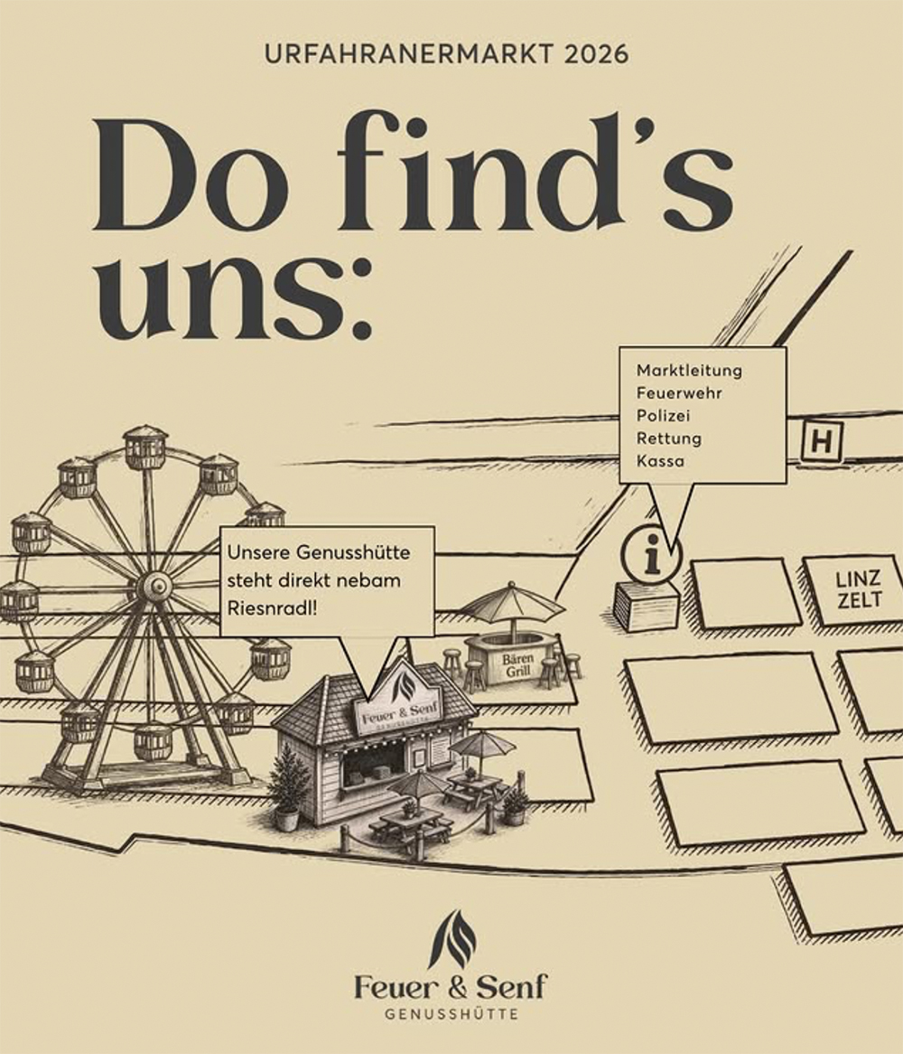 Spannender Neuzugang am heurigen Urfahraner Frühjahrsmarkt (30.04.-10.05.): Gastro-Urgestein Benny Wagner kehrt mit einer neuen Idee zurück: Mit seiner FEUER & SENF GENUSSHÜTTE setzt er voll auf Genuss mit Stil & Flair im edlen Holzhütten-Design. Mit Bratwurscht, Bosna, Bier und Hütten Bowl – zu finden ab Donnerstag, 30. April gleich neben dem Riesenrad!