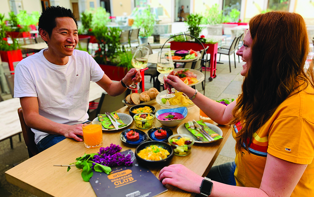 So geht Open Air Gastro: Der Innenhof im JOSEF Linz mit seinen schattigen Kastanienbäumen ist ein perfekter Mix aus Biergarten und Gastgarten.