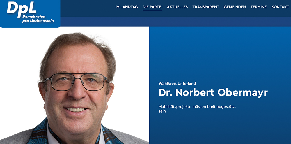 Der Linzer Gemeinderat Norbert Obermayr ist offensichtlich auch in Liechtenstein politisch aktiv (Screenshot: https://www.dpl.li/personen-lw/dr-norbert-obermayr/)