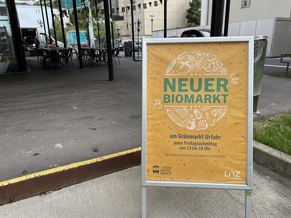 In direkter Nähe befindet sich zudem die Lentia City, der dortige XL-Supermarkt bietet nicht nur eine Riesenpalette an Bio-Lebensmitteln und Gastronomie, in der Einkaufspassage finden auch regelmäßig Biomärkte mit entsprechenden Anbietern statt. Zusätzlich gibt es gleich ums Eck in der Hauptstraße ein Bio-Lebensmittelgeschäft mit treuer Stammkundenschaft. Ob es da Sinn macht, mit ein paar Standln ein (minimalistisches) Konkurrenzangebot etablieren zu wollen, darf als „ambitioniert“ bezeichnet werden.
