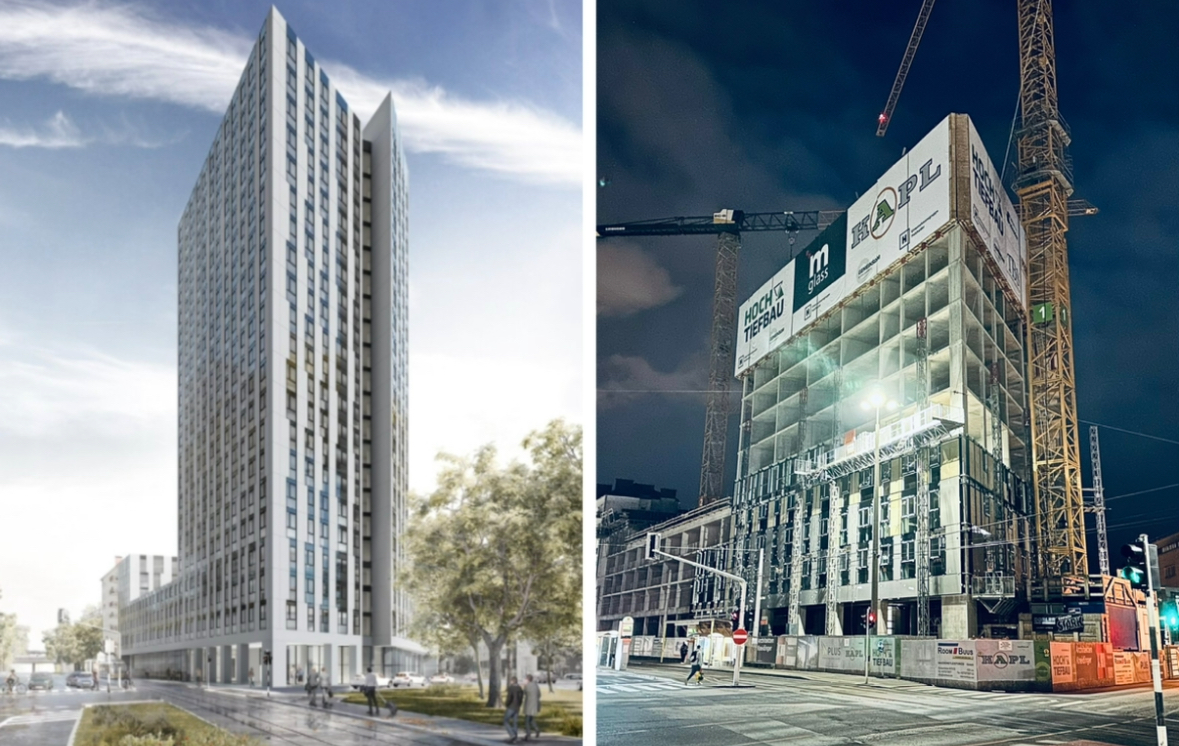 Das Projekt hat auch einen neuen Namen bekommen und firmiert jetzt unter „High Five Wohnturm“. 2025 wird der 21-stöckige Bau eröffnet.