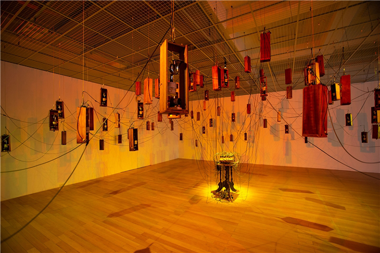 Die künstlerischen Highlights: Die Ursulinenkirche wird im Rundgang wieder über den Balkon eingebunden und gibt den Blick auf die Arbeit Return von Sheng Chien Hsiao frei. Duzende Vogelkästen zwitschern und verzweigen sich baumähnlich im Kirchenraum. Dieser Klangraum ist ein Ausflug in die paradiesischen Kindheitserinnerungen des Künstlers.