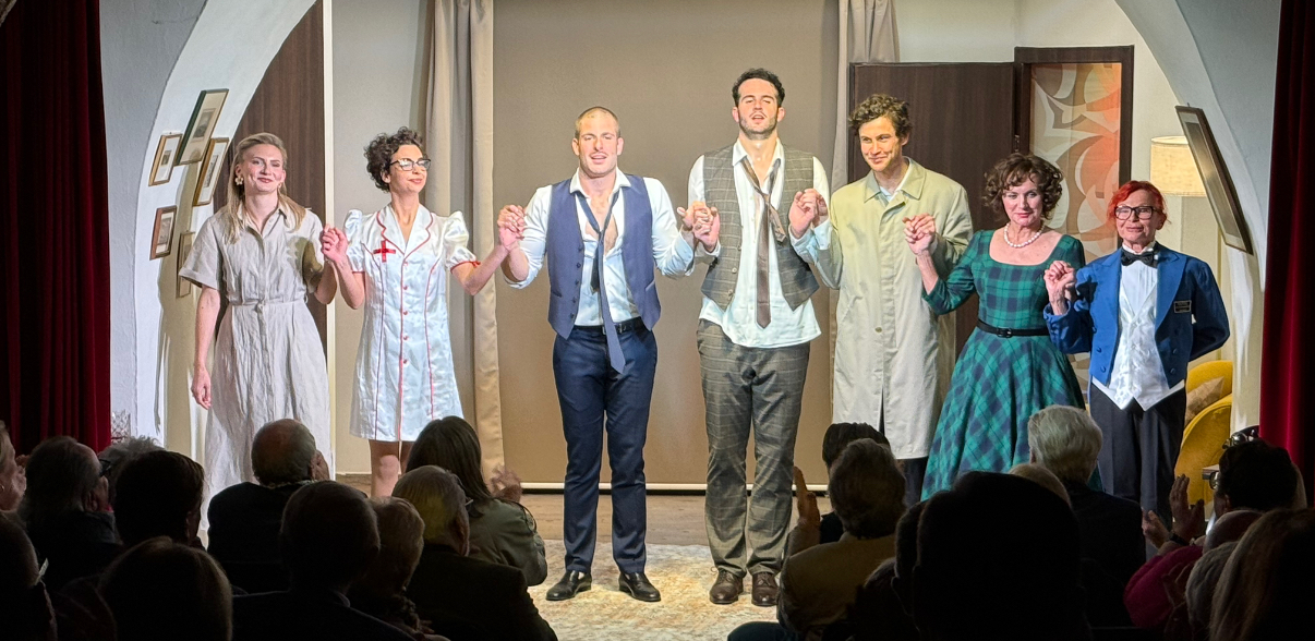 Bester Mann auf der kleinen, aber feinen Bühne in den historischen Gewölben des Hauses Hauptplatz 21: Filipp Peraus als komplett überforderter Ministersekretär George Pöltzl. Unbedingt anschauen!
