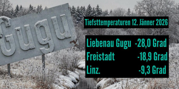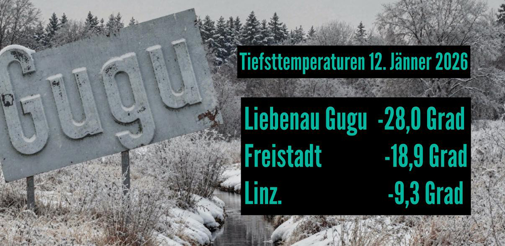 Nochmals getoppt wurde heute Nacht der österreichische Kälterekord dieses Winters: Im Mühlviertel fiel das Thermometer am Morgen des 12. Jänner 20206 auf -28,0°. Auch der Raum Linz hatte diese Nacht mit dem Thema Klimaerwärmung mit fast 10° unter null wenig zu tun. Aktuell war der Jänner in Linz um 3,4 Grad kälter als das langjährige Mittel – in den letzten 40 Jahren gab es laut geosphere-Statistiken nur drei Jänner-Monate, die kälter waren. Ab heute wird’s wärmer, in den kommenden Tagen stellen sich in der Landeshauptstadt Temperaturen um die 0° bis 4° ein.