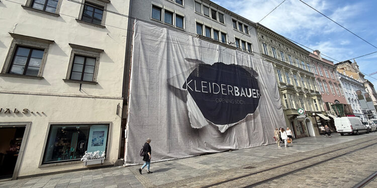 Rätselraten um die seit sechs Jahren geschlossene Kleider Bauer Filiale auf der Landstraße: Nachdem die Umbauarbeiten bereits 2023 hätten starten sollen, verhüllt seit Oktober 2024 ein Baustellengerüst samt „Coming soon“-Aufschrift die Fassade. Die angekündigten Bauarbeiten blieben seitdem aber aus – weder innen noch außen starteten bislang die Aktivitäten, wie uns Anrainer informierten. Der kolportierte Eröffnungstermin (zuletzt war von Ende 2025 / Anfang 2026 die Rede) ist wohl nicht mehr zu halten. Anhand der allgemeinen Krise im stationären Handel steht mittlerweile die Frage im Raum, wann es zu einer Wiedereröffnung der XL-Filiale kommt.
