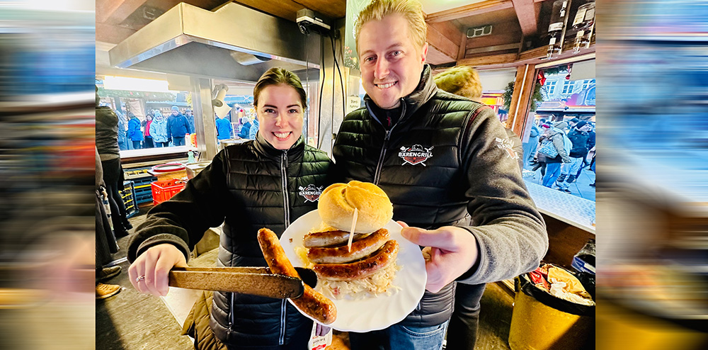„Bratwürstl sind niemandem Wurscht – zumindest nicht in Linz und Oberösterreich“ lachen Lisa Sigl und Michael Nell. Das Duo betreibt seit heuer den „Bärengrill“ am Hauptplatz-Christkindlmarkt. Auf den Rost kommen original Bratwürstl aus dem Hause Riepl, am Grill steht der vierfache Haubenkoch Rudi Grabner. Beste Voraussetzungen für einen kulinarischen Hochgenuss.