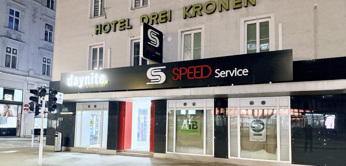 Jetzt sperrte auch im Gebäude des ehemaligen Hotels Drei Kronen ein Automatensalon inklusive eines Boxautomaten auf. Gleich daneben kündigen Plakate die Eröffnung eines Handyshops an.