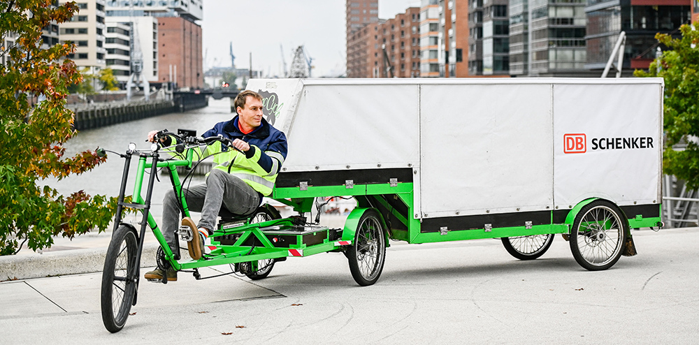 Mit einer Länge von sieben Metern und einer Zuladung von einer halben Tonne fährt das XXL-Lastenrad auf fünf Rädern, im Laderaum ist Platz für drei Paletten. Durch ihre schmale Bauart können die elektronisch unterstützten “Tret-LKWs” jeden Stau umschiffen. Die 7,5-Tonnen Diesel-LKWs, die in der Auslieferung auf der letzten Meile bislang meist verwendet werden, können 2,5 bis 3 Tonnen zuladen. Mit fünf Lastenrad-Fahrten ist so ein LKW ersetzt.