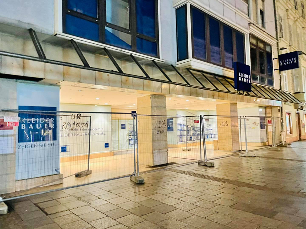 - Seit zweieinhalb Jahren geschlossen ist die große Kleider Bauer Filiale auf der Landstraße aufgrund eines Rechtsstreits zwischen Mieter und Hauseigentümer. Die Stadt Linz selbst verhängte 2019 die Schließung wegen „baulicher Mängel“. Seitdem verkommt das Haus zu einem Schandfleck, der Eingangsbereich wird von Obdachlosen als Schlafstätte genutzt.