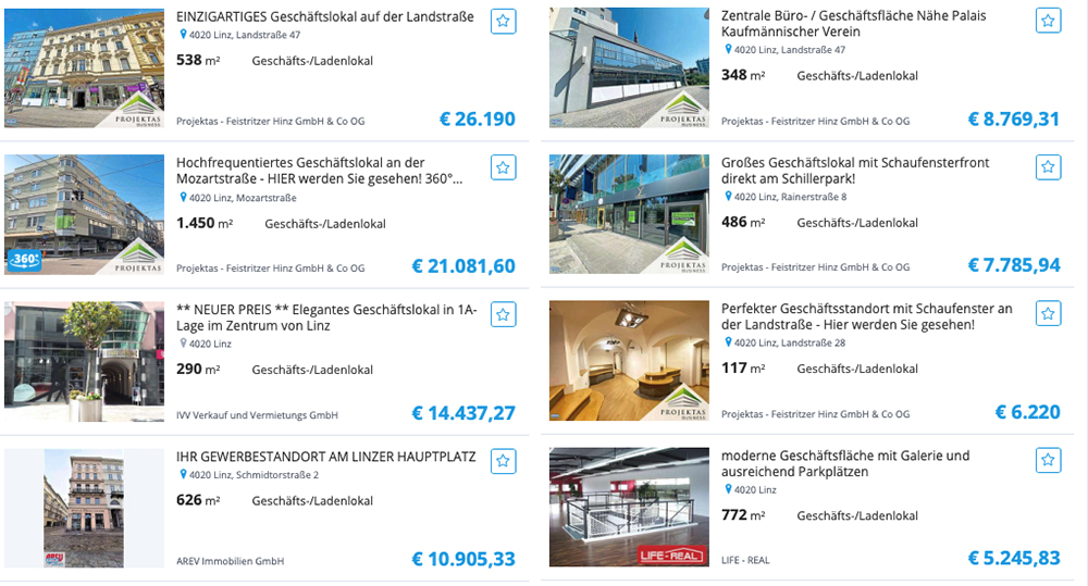 - Im Objekt Landstraße 28 richtete die OÖVP rund um die Wahl 2021 für ein paar Monate ihr Pop Up-Wahlkampfbüro ein, seitdem steht das Lokal mit 74 Quadratmeter Geschäftsfläche wieder leer und wartet für eine Miete von 7.464 (plus 40.000 Euro Kaution und 22.500 Euro Provision) auf einen potenten Nachmieter….