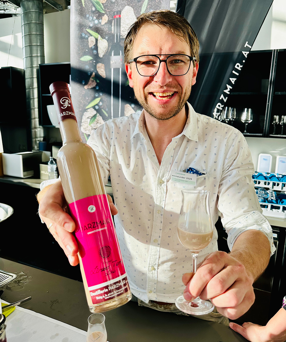 Das Who-is-Who der oberösterreichischen Gastronomie- und Weinszene traf sich am vergangenen Montag im Hofmann Personal Stadion in Linz, wo das Lichtenberger Weinhändler-Paar Rita und Hannes Wakolbinger vom Weinhaus Wakolbinger zum Weinwunder geladen hatte. Bei der exklusiven Weinverkostung gab es dieses Jahr eine Weltpremiere: Destillerie Parzmair-Chef Franz Ratzinger präsentierte erstmals seinen Original-Linzer-Torten-Likör: „Wir haben uns vom Geschmack der Linzer Torte inspirieren lassen und über ein Jahr intensiv an der Rezeptur des Likörs gearbeitet.“ Die Basis des Original-Linzer-Torten-Likörs besteht aus Vollmilch und Eidotter, als Alkoholbasis dienen Johannisbeerbrand und gebrannte Haselnuss, die mit Zimt- und Nelkenauszügen angereichert werden.