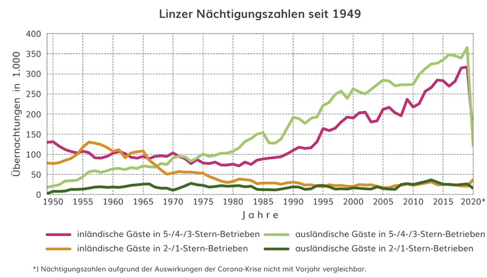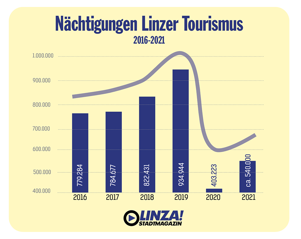 Neun Jahre nach dem Kulturhauptstadtjahr 2009 wurde 2018 zum Rekordjahr: Um formidable 4,8 Prozent konnten die Nächtigungszahlen nach oben gepusht werden, im Jahr darauf gab’s mit den erwähnten 935.000 Nächtigungen einen neuerlichen Rekord.
