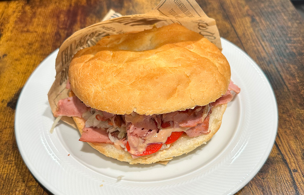Das „Linzerbrot“ wird gegrilltem Leberkäse, Zwiebel, Krautsalat, Paprika und Cocktailsauce serviert – Brot und Leberköse kommen vom regionalen Produzenten. Preis? 8 Euro. „Heimatbrot“ (8,70 Euro) nennt sich die Version mit Leberkäse, Ruccola, Tomaten, Zwiebel, Paprika, Essiggurke und Knoblauch.