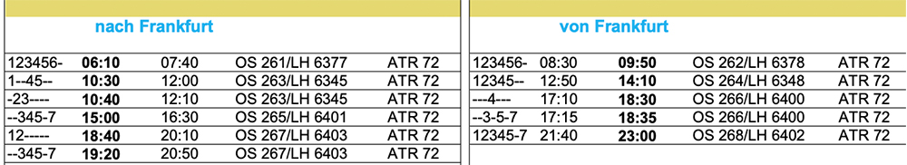 Bislang wurde die Strecke von Linz nach Frankfurt dreimal täglich bedient, aufgrund der guten Entwicklung wird Frankfurt ab Linz am Mittwoch, Donnerstag und Freitag ein viertes Mal angesteuert.