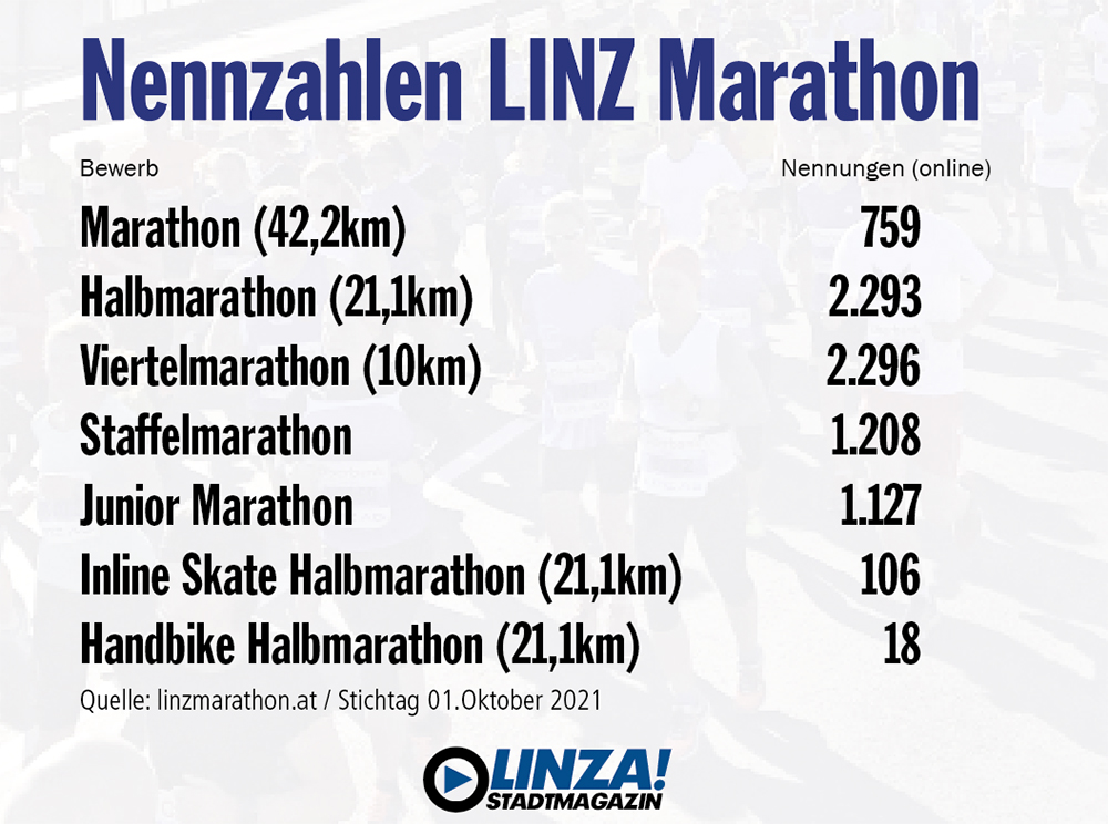 Natürlich ist der größte Laufevent OÖs, der heuer zum bereits 19. Mal steigt, weit weg von den Zahlen der Vergangenheit, wo bis zu 20.150 Lauffreunde mit dabei waren, aber es ist schon ein großartiger Erfolg, dass heuer überhaupt gestartet werden kann: Mit 7.807 Nennungen ist zum Stichtag 1. Oktober ein mehr als erfreulicher Zwischenstand zu vermelden.
