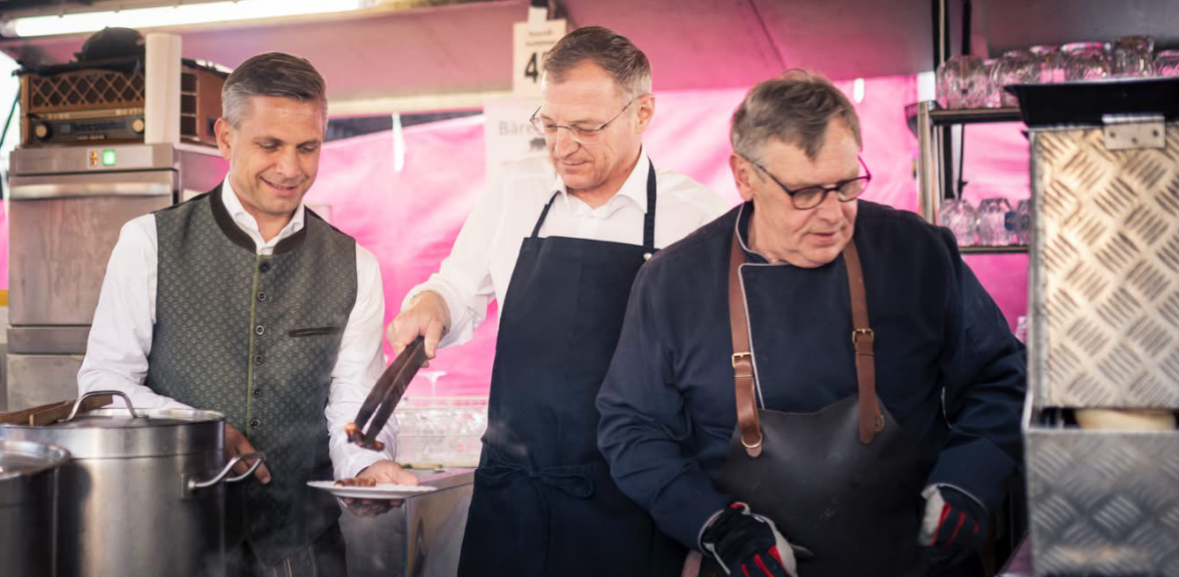 Einen Abend lang steht der Linzer Wirtschaftsminister Wolfgang Hattmannsdorfer am Bären-Bratwürstelgrill des Urfahraner Jahrmarkts (zwischen Bierzelt und Crazy Mouse-Fahrgeschäft), Unterstützung gibt’s von Landeshauptmann Thomas Stelzer. Gemeinsam mit Starkoch Rudi Grabner wird diesen Dienstag (29. April) ab 17:30 Uhr für den guten Zweck gegrillt.