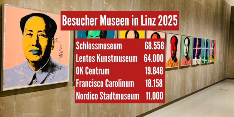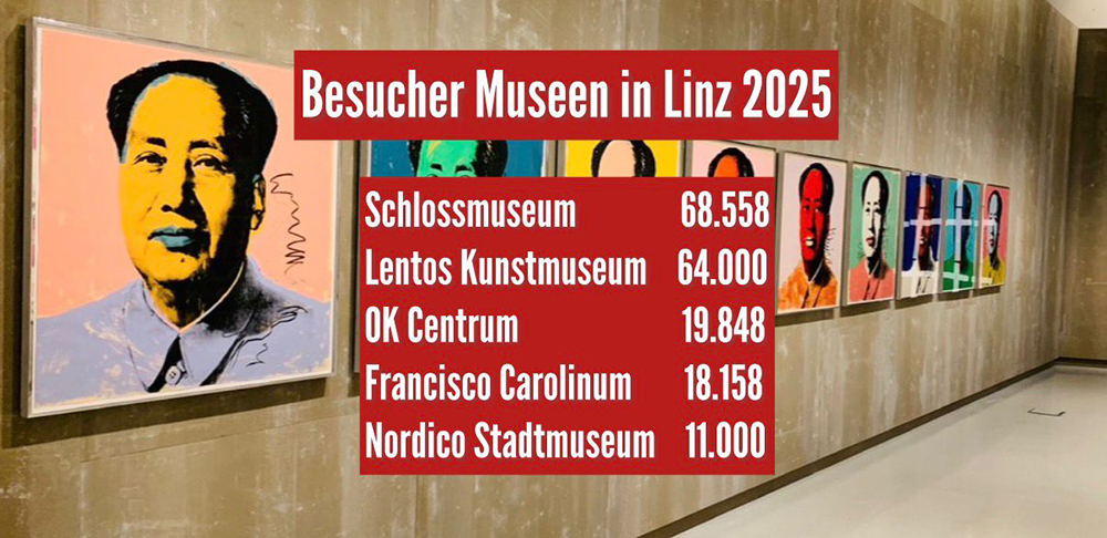 Zäh entwickeln sich die Besucherzahlen in den Linzer Museen: Im Vorjahr gab es fast überall einen Rückgang. Im Schlossmuseum wurde ein Minus von knapp 13.000 Besuchern verzeichnet (-16%), in Lentos und Nordico gab es 75.000 Eintritte (nach 83.000 im Vorjahr / -9,6%). Das Nordico verzeichnete 2025 im Schnitt weniger als 40 Besucher pro Öffnungstag.