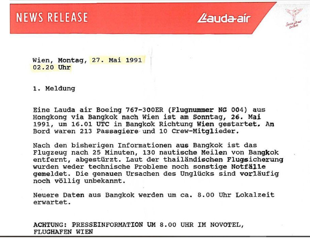 Es war Österreichs größte Luftfahrtkatastrophe: Am 26. Mai 1991 stürzte die Lauda-Air-Boeing 767 „Mozart“ mit 223 Menschen an Bord kurz nach dem Start in Bangkok ab. Niemand überlebte. Jetzt erscheint das erste umfassende Sachbuch zum Unglück – und es zeichnet ein Bild, das weit über den bekannten Konstruktionsfehler von Boeing hinausgeht. Ein Buch, das nicht nur die Katastrophe neu beleuchtet – sondern auch zeigt, wie teuer Schlamperei und Druck im Cockpit werden können. 35 Jahre später wird endlich das ganze, bittere Bild sichtbar.