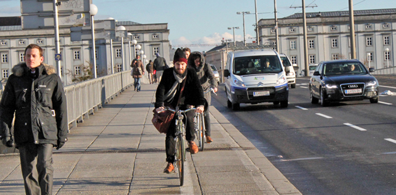 Täglich fahren hunderte LKWs/Busse und tausende PKWs viel zu knapp an Radfahrern am Brückenradweg vorbei, im Glauben, sie können völlig ohne Berücksichtigung der Radfahrer am daneben geführten Brückenradweg unterwegs sein: „Tatsächlich gilt aber §15 Abs. 4 StVO: „Beim Überholen ist ein der Verkehrssicherheit und der Fahrgeschwindigkeit entsprechender seitlicher Abstand vom Fahrzeug, das überholt wird, einzuhalten.“ Das ist gemäß vielen Erkenntnissen bei Tempo 50 mindestens ein Meter, was hier jeden Tag tausendfach mit Tempo 50 und mehr unterschritten wird“, schreibt die Radlobby in einer Aussendung.