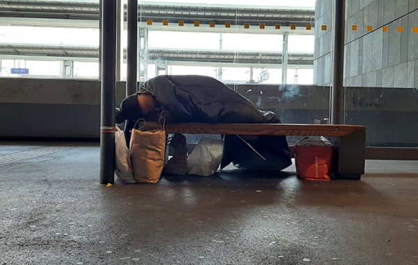 Mittlerweile schlafen Menschen ohne Unterkunft nicht mehr „nur“ am Busbahnhof beim Hauptbahnhof, sondern an unzähligen öffentlichen Stellen der Stadt wie etwa hier in der Kaarstraße – und man hat den Eindruck, es werden täglich mehr. Keine leichten Zeiten…