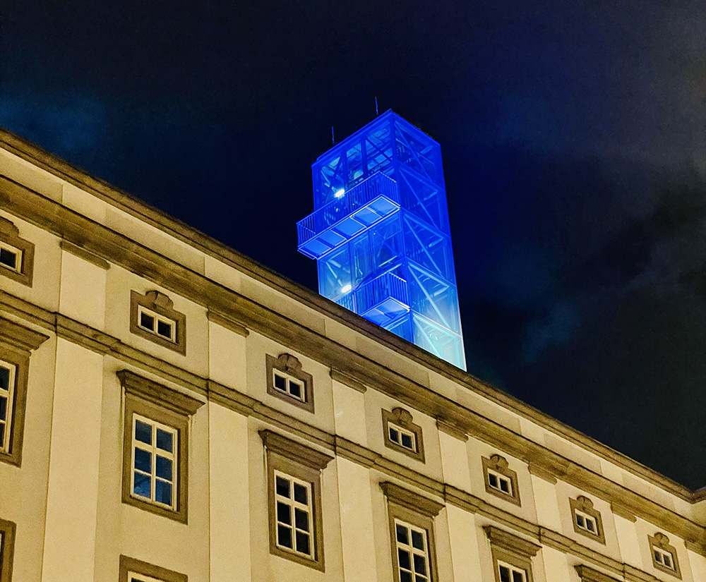 Die in der Dunkelheit üppig beleuchtete Linzer Skyline entlang der Donau hat Zuwachs bekommen: Seit kurzem wird auch der 2017 errichtete, 380.000 Euro teure und 30 Meter hohe „Transzendenzlift“ am Dach der Kunstuniversität futuristisch-bunt beleuchtet. Um einen Beitrag zur Sparsamkeit zu leisten und den Energieverbrauch zu senken, fordern die Linzer Grünen nach Züricher Vorbild einen „Plan Lumière“ – und damit weniger und effizienter eingesetzte Lichtquellen.