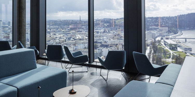 Das Konzept vereint Restaurant, Bar und Lounge in einem offenen, großzügigen Raum mit umlaufenden Panoramafenstern. Etwa 120 Sitzplätze stehen im Innenbereich zur Verfügung, ergänzt durch rund 40 Plätze auf der Terrasse, die in den wärmeren Monaten geöffnet ist. Zwei Expressaufzüge verbinden das Erdgeschoss mit dem 27. Stock, die Fahrt dauert weniger als 30 Sekunden.