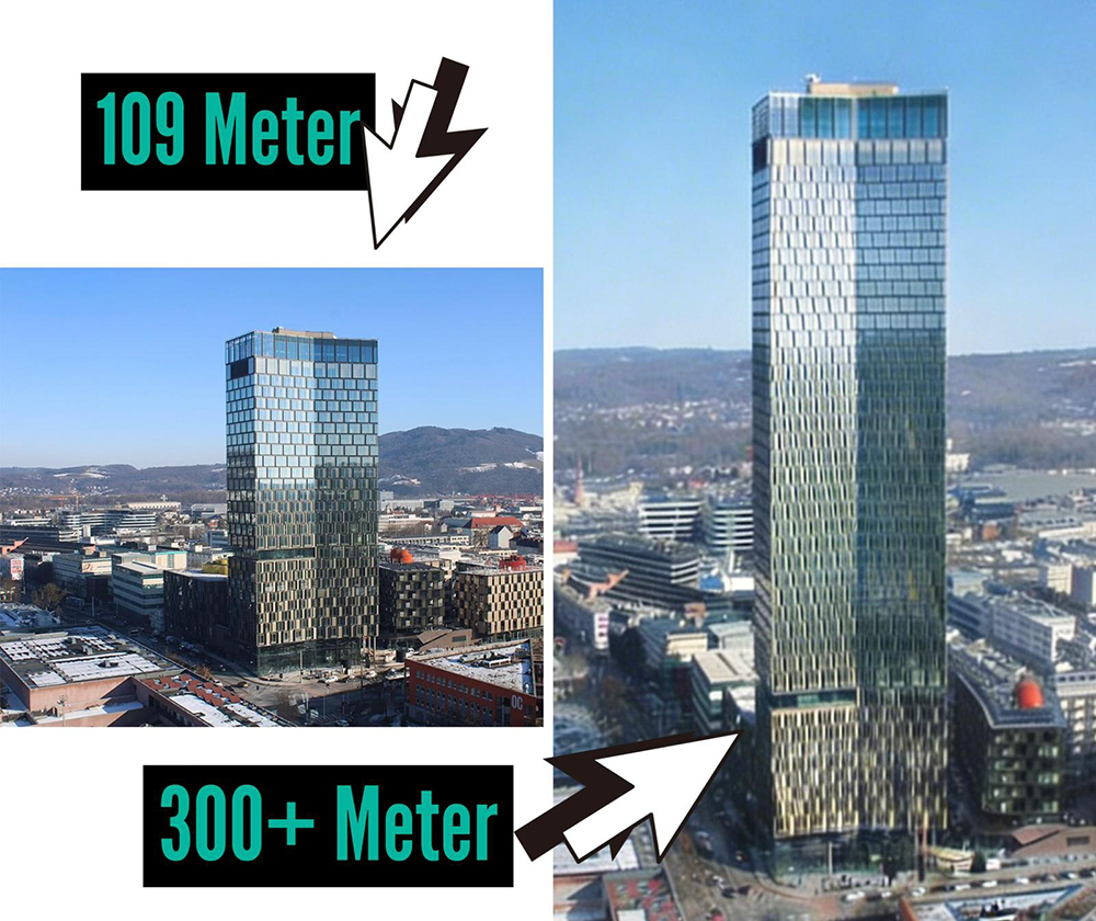 - Um in die Top 100 zu kommen, hätte man die Quadrill mehr als dreimal so hoch bauen müssen – exakt 343 Meter wären aktuell dazu nötig.