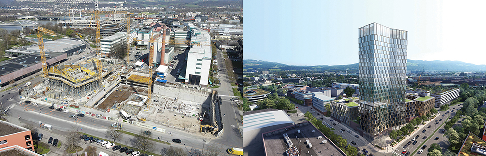 „Nach drei Tiefgaragengeschossen sind nun die ersten rund 20 Meter nach oben geschafft. Bis zum Jahresende wird der Tower bereits eine Höhe von rund 60 Metern erreichen.“